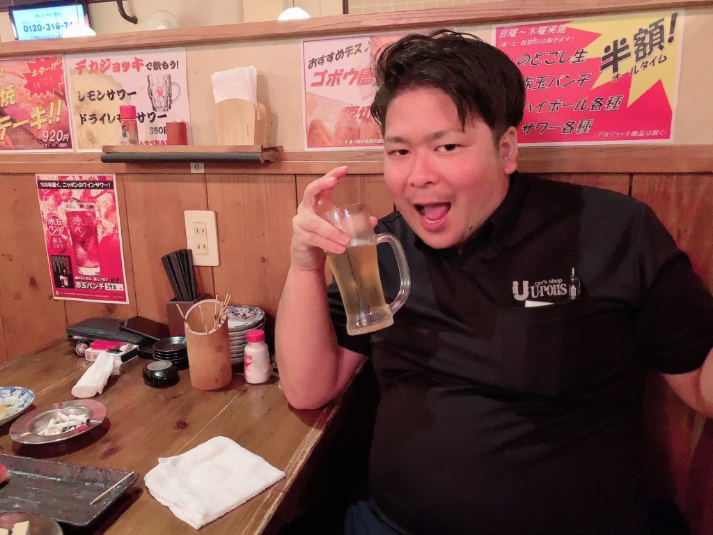 ↑ビール片手にご機嫌な喜屋武先生