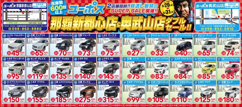 ユーポス新都心店&奥武山店へお急ぎ下さい!!